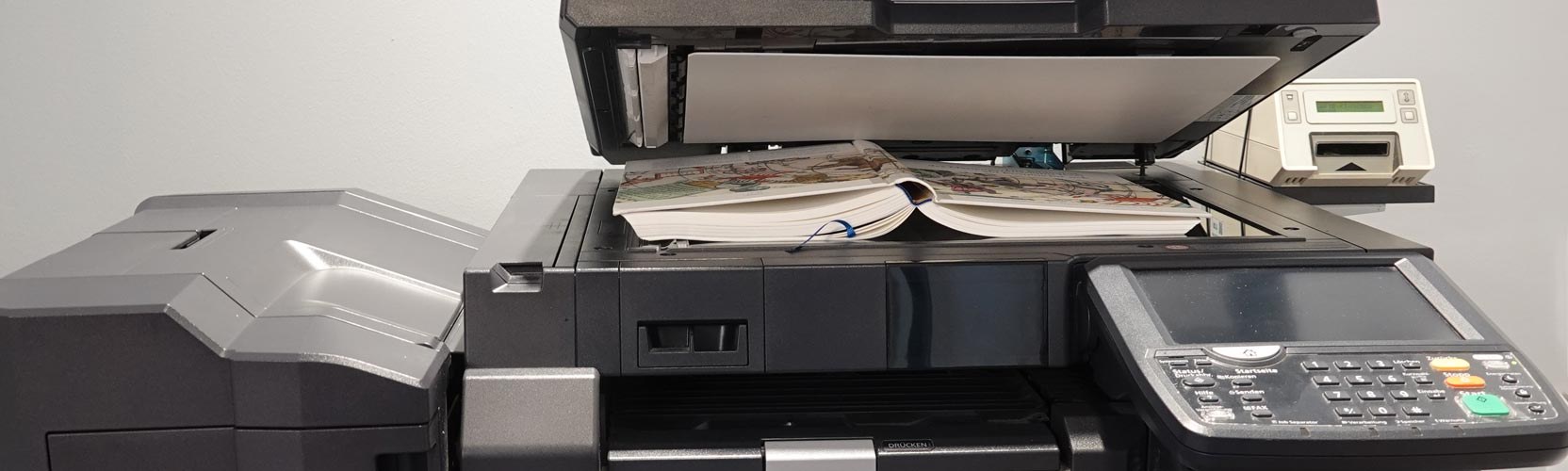 Arbeiten Sie bei uns vor Ort, dürfen Sie Teile des Bibliotheksbestandes selbstständig kopieren oder fotografieren.