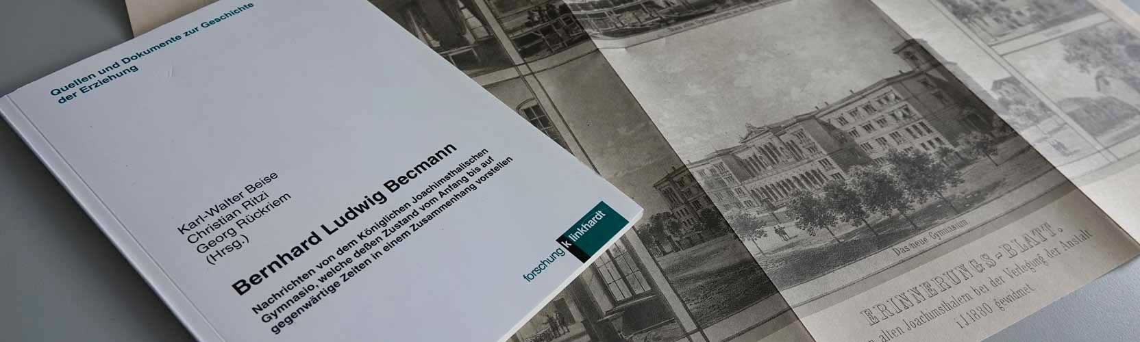 Beise, Karl-Walter/Ritzi, Christian/Rückriem, Georg (Hrsg.) (2012): Bernhard Ludwig Becmann. Nachrichten von dem Königlichen Joachimsthalischen Gymnasio, welche deßen Zustand vom Anfang bis auf gegenwärtige Zeiten in einem Zusammenhang vorstellen. Bad Heilbrunn: Klinkhardt. 86 S. + CD. (Quellen und Dokumente zur Geschichte der Erziehung).